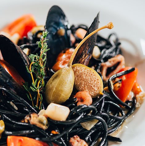 chargrilled broccoli & lemon red tiger prawns seabream shellfish squid