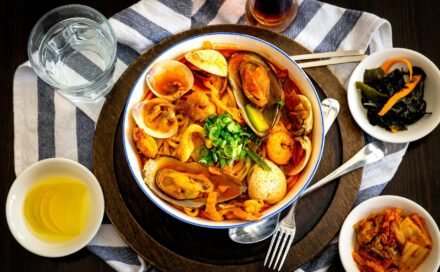 chargrilled broccoli & lemon red tiger prawns seabream shellfish squid